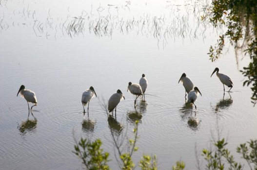 Wood storks fishing